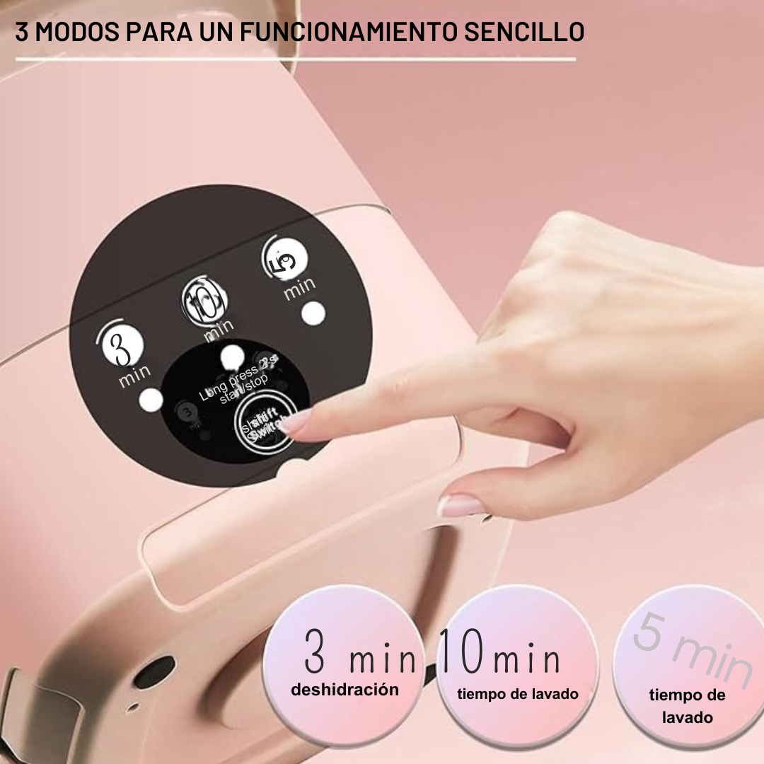 Funcional y fácil de usar, esta lavadora portátil es ideal para departamentos pequeños, viajes o ropa delicada. Su peso liviano y diseño ergonómico hacen que lavar sea rápido, cómodo y sin esfuerzo.